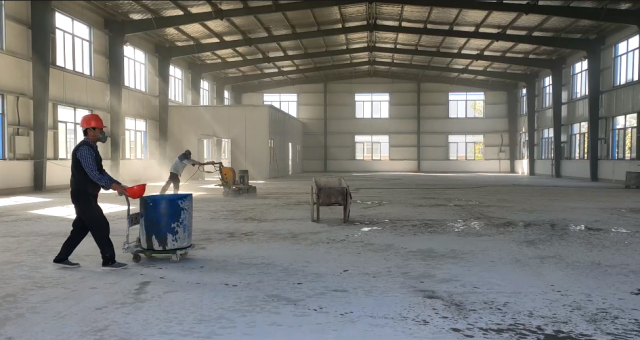 待加強劑反應(yīng)2-4小時后,用灑水車濕潤地面,準(zhǔn)備初步拋光