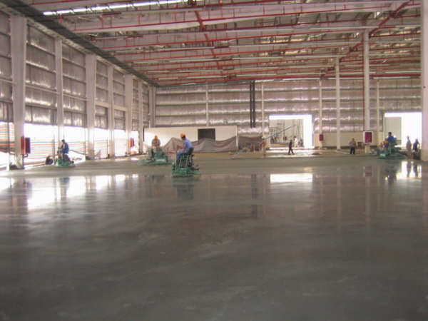 混凝土金剛砂耐磨硬化地坪是由特制的耐磨骨料分兩次撒布在初凝的混凝土上,再通過專業(yè)設備進行提漿研磨而成,通過該工藝制作的地坪能夠 使混凝土的強度提高2--3倍以上,從而提高了混凝土的耐磨性及抗沖擊能力,同時也提高了混凝土的平整度。